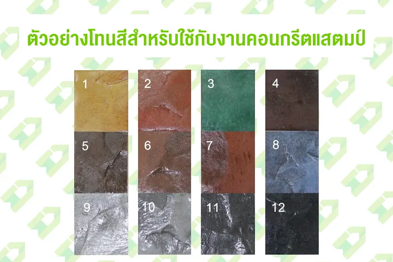 - การป้องกันความชื้น พื้นคอนกรีตแสตมป์ควรมีการป้องกันความชื้นเพื่อป้องกันการเสียหายจากน้ำฝนหรือการเปียกชุ่ม การใช้ซีลเลอร์เพิ่มเติมหรือระบบระบายน้ำอาจช่วยในการป้องกันน้ำเข้าสู่พื้น
